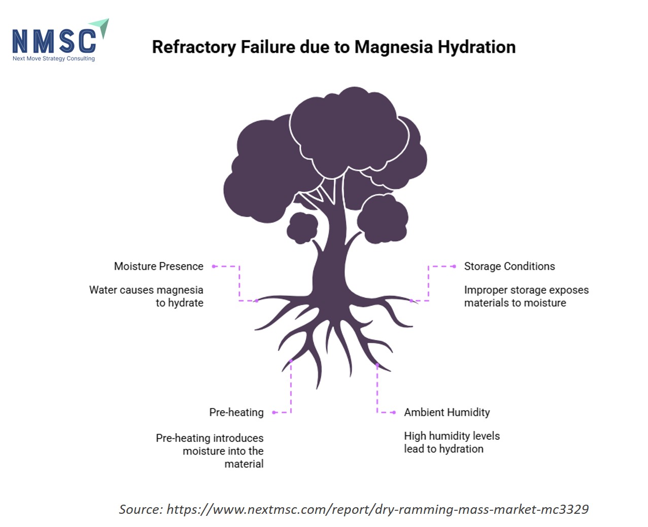 Because this is a dry material that requires precise installation technique, vibration/ramming, densification, sintering schedule, and also good storage (to avoid moisture uptake), the skill and process discipline are non-trivial. Any lapse can lead to defects. NextMSC studies list “complexity of manufacturing processes and the need for skilled labour” as a hurdle for the Dry Ramming Mass (DRM) Market.