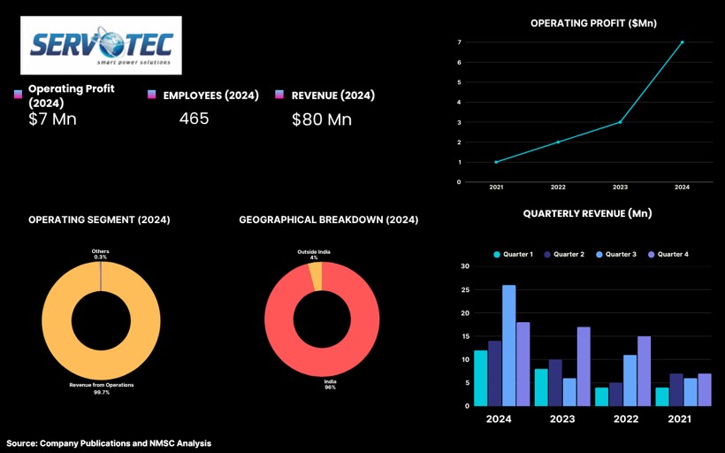 Servotech Renewable Power System Limited, headquartered in New Delhi, India, is a prominent player in the renewable energy and electric vehicle (EV) charging sectors. The company specializes in manufacturing advanced solar products and efficient EV chargers, including ultra-fast DC and home AC chargers. Servotech has installed over 2,400 EV chargers in collaboration with renowned oil marketing companies, contributing significantly to India's EV charging infrastructure. As the demand for electric mobility solutions grows, Servotech's involvement in the India EV charging market positions the company as a key contributor to the nation's transition to sustainable transportation.