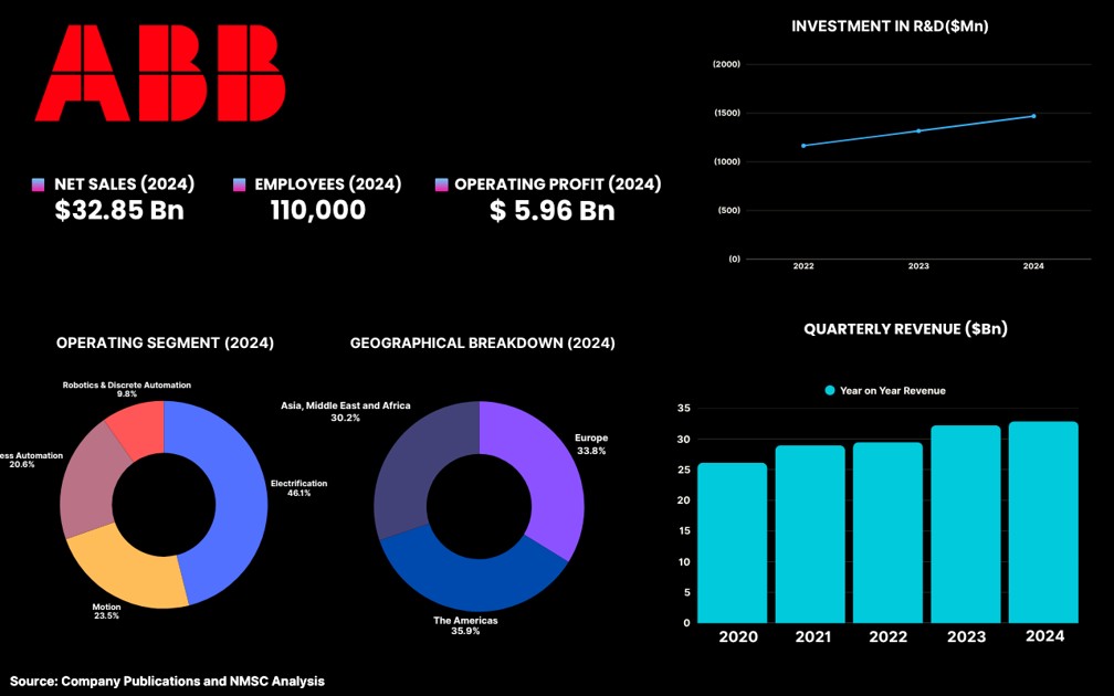 In 2024, ABB launched its next-generation robotics control platform, OmniCore, representing a strategic investment of USD 170 million. OmniCore integrates ABB's complete range of hardware and software, enabling faster, more precise, and more autonomous automation. This development enhances ABB's capabilities in delivering advanced, sustainable automation solutions across various sectors.