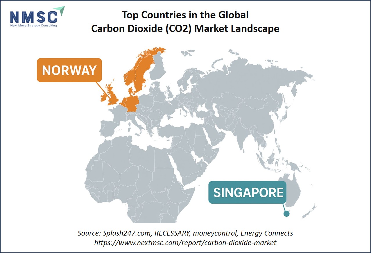 Europe leads the global CO2 market, driven by robust policy frameworks and large-scale CCS projects. Norway is the top country, hosting the Northern Lights project, which is Europe’s largest carbon capture and storage initiative, with a capacity to store 1.5 million tonnes of CO2 annually, expandable to 5 million tonnes.