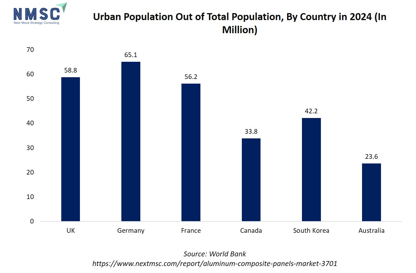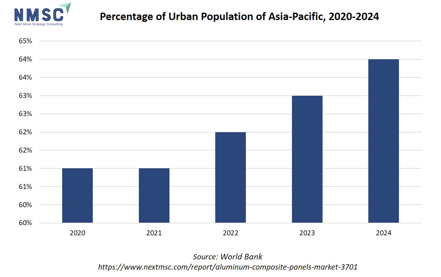 This dynamic directly impacts the global aluminum composite panels market by driving robust demand for lightweight, durable, and aesthetically versatile facade and cladding solutions in high-rise buildings, commercial complexes, and transit infrastructure within rapidly growing urban centers.