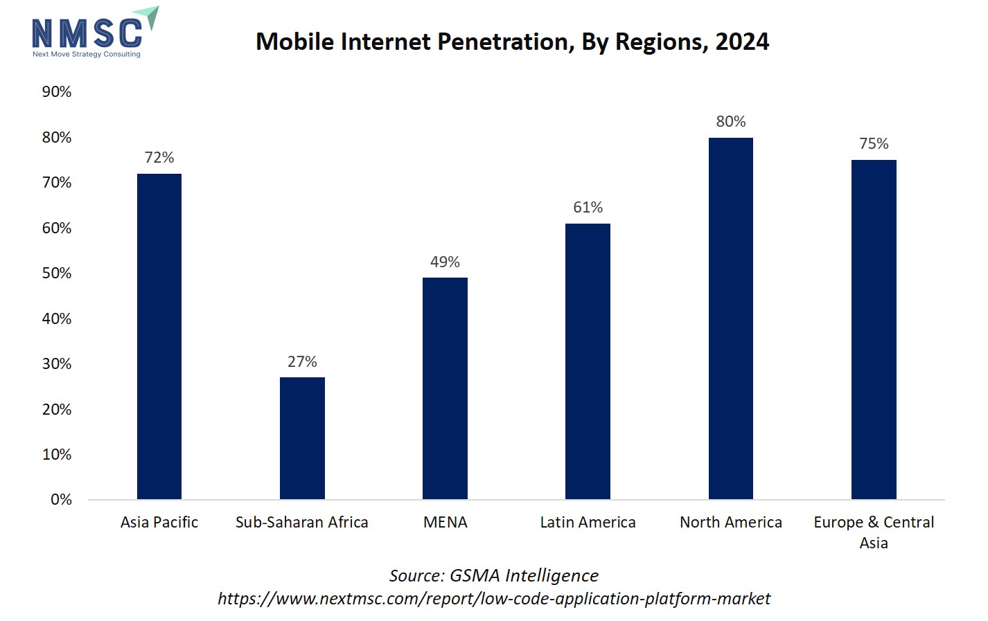 In contrast, regions with lower penetration, like Sub-Saharan Africa, present untapped potential, where LCAP providers could focus on mobile-first solutions to bridge digital gaps. Overall, mobile internet penetration serves as a strong enabler for LCAP adoption, influencing low-code application platform market strategies and regional growth priorities.