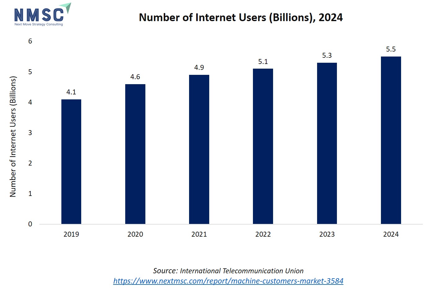 The above chart depicts the steady global growth in the number of internet users, rising from 4.1 billion in 2019 to 5.5 billion in 2024. The continued expansion in internet adoption directly expands the addressable customer base for the machine customers market, which depends on connectivity for both direct machine-to-machine (M2M) transactions and user-driven digital services. As internet penetration increases, more devices and automated systems become viable participants in digital ecosystems, driving greater adoption, upgrades, and innovation in machine customers solutions worldwide