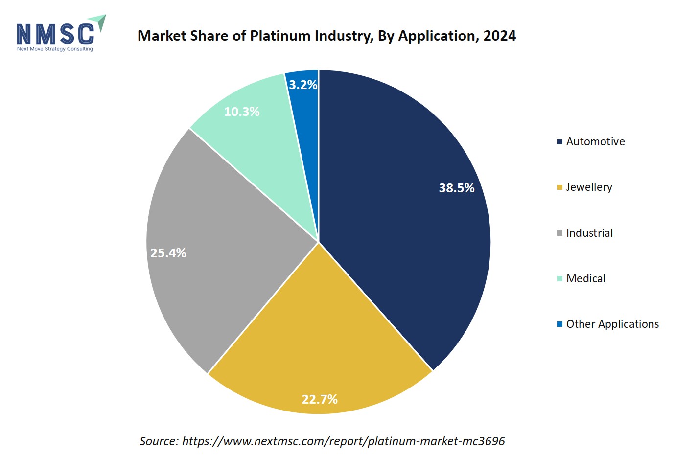 Automotive refers to the use of platinum in vehicles, primarily for emission control and alternative energy solutions. The segment includes Catalytic Converters, which reduce harmful exhaust emissions from gasoline and diesel engines by facilitating chemical reactions that convert pollutants into less harmful gases. It also includes Hybrid and Fuel Cell Vehicles, where platinum acts as a key catalyst in fuel cells, enabling the efficient conversion of hydrogen into electricity to power the vehicle. This segment is a major driver of platinum demand due to regulatory requirements for cleaner emissions and the growing adoption of green mobility technologies.